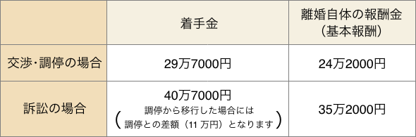 ※ 離婚協議書作成のみの場合は、費用は手数料11万円(税込)のみです。